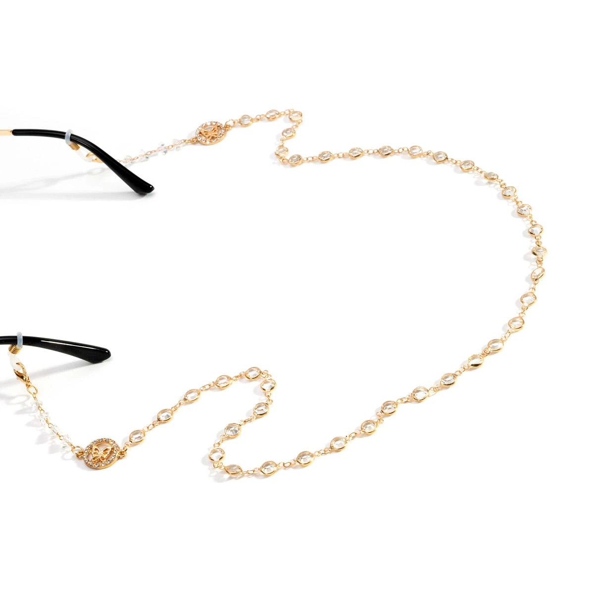 Mirha is a gold eyeglass chain. Crystals on the chain are gorgeous and shining. With butterflies elements on the chain, the Mirha is lovely and fine. At the first sight, you will be surprised by its clear and refreshing look.